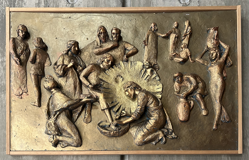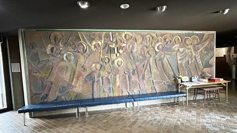 2009(平成21)年、教会創設30周年を記念して、行き交う人のご保護を祈り、屋外に「マリア像」が設置されました。また、聖堂内に秋山康恵氏による「十字架の道行き」のレリーフを掲げ、同時に聖堂内の木製の十字架に「キリスト像」が掲げられました。
