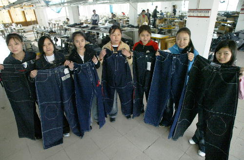 四川省の農村に住む16歳のジャスミン・リーは、生計を助けるために出稼ぎ者として都会に出てきました。ジャスミンは、日本や欧米の国々へ輸出しているジーンズを作っている工場で働くことになりました。そこでは、裁断する人、ミシンをかける人、アイロンをかける人、できあがったジーンズを箱に詰める人と、ジーンズの山に埋もれながら一所懸命に働いていました。ジーンズ1本を作るのに、15~16人がたずさわることになりますが、1本あたり6.9元、約107円の賃金です。工場では、一日に3,000本のジーンズが作られ、少女たちは月200元~500元、3,120円~7,800円の給料をもらいます。