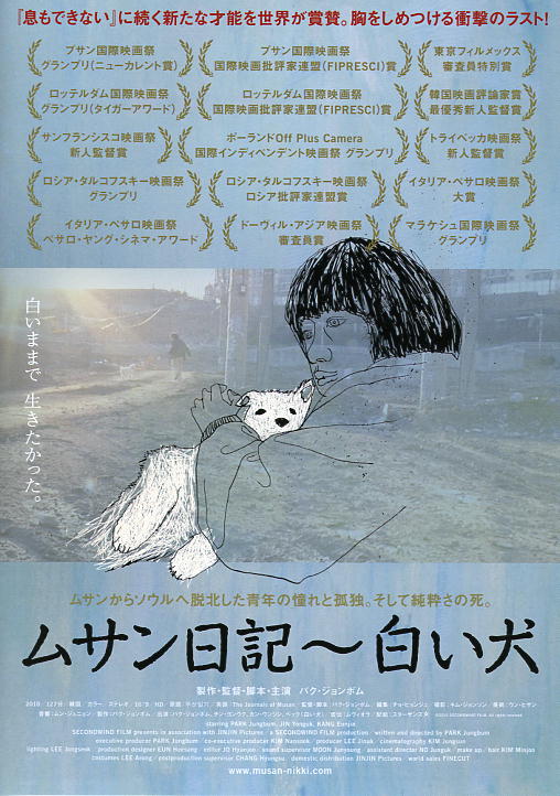 兵役時代に、北野武監督の「HANA-BI」を観て映画監督を目指したというパク・ジョンボムは、韓国の巨匠イ・チャンドン監督の助監督として活躍し、本作で、初の長編に挑戦しました。製作、監督、脚本、主演と一人で4役をこなした「ムサン日記~白い犬」は、各国の映画祭でたくさんの賞を受賞し、韓国でもっとも期待されている監督です。