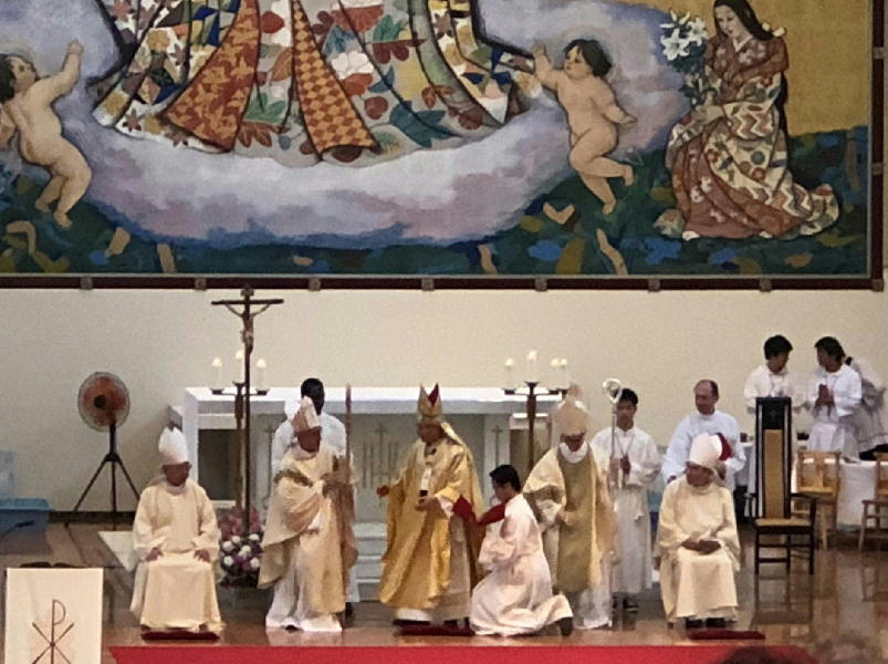 6月にバチカンで枢機卿に親任された前田枢機卿の主式で、バチカン大使、日本の司教たち、たくさんの司祭たちの司式でおこなわれました。叙階の儀のときの、司教たちによる按手が心に残りました。
