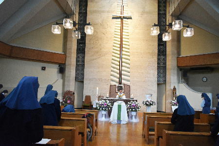 若いときは、その小さな身体でエネルギーを全部出し切ったように活発に活動し、老年期は入退院を繰り返しながらも、穏やかに身体の状況を受け入れていきました。コロナ過の中で、お見舞いのために施設を訪問することがなかなかできませんでしたが、15分という短い面接時間の中で、Sr.アルカンジェラと、姉妹としての最後のときを過ごしました。台湾、マカオのシスターたちも、いつもSr.セレナ金嵜のために祈ってくださっていました。