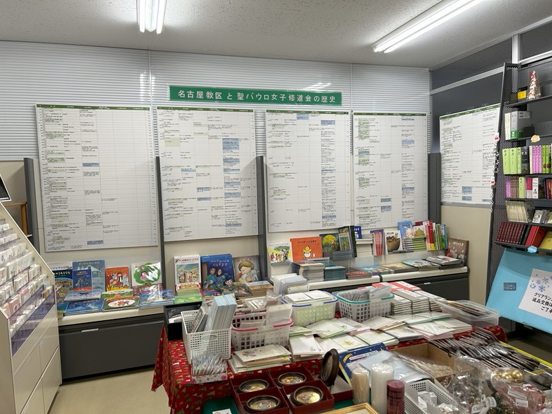 書院の中には、名古屋教区と聖パウロ女子修道会の歴史のパネルを展示し、また、鍋鉉町の修道院、伊勢湾台風の被害を受けたときの写真、布池の修道院の写真、また、名古屋で入会したシスターたちの志願者のころの写真パネルも展示しました。