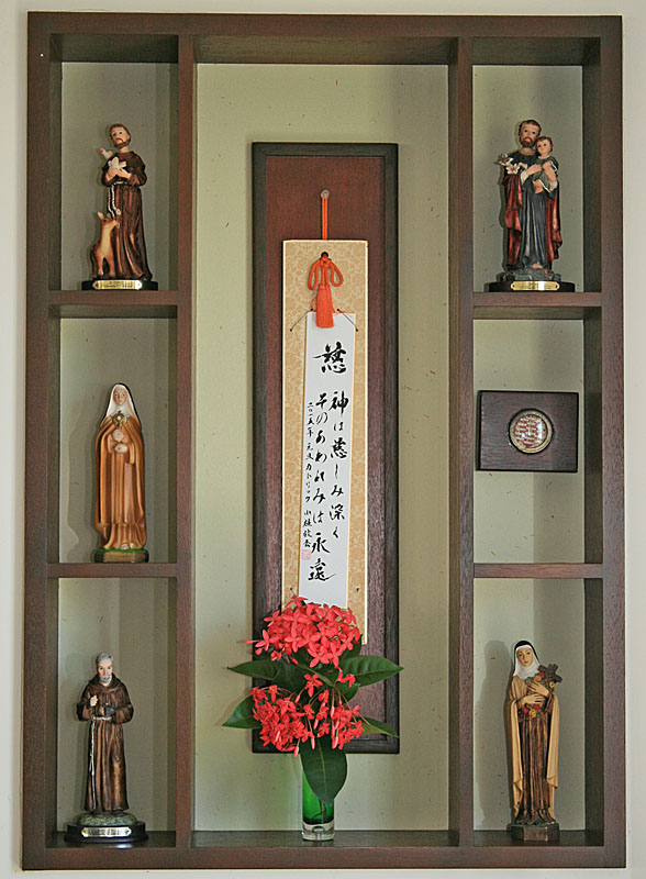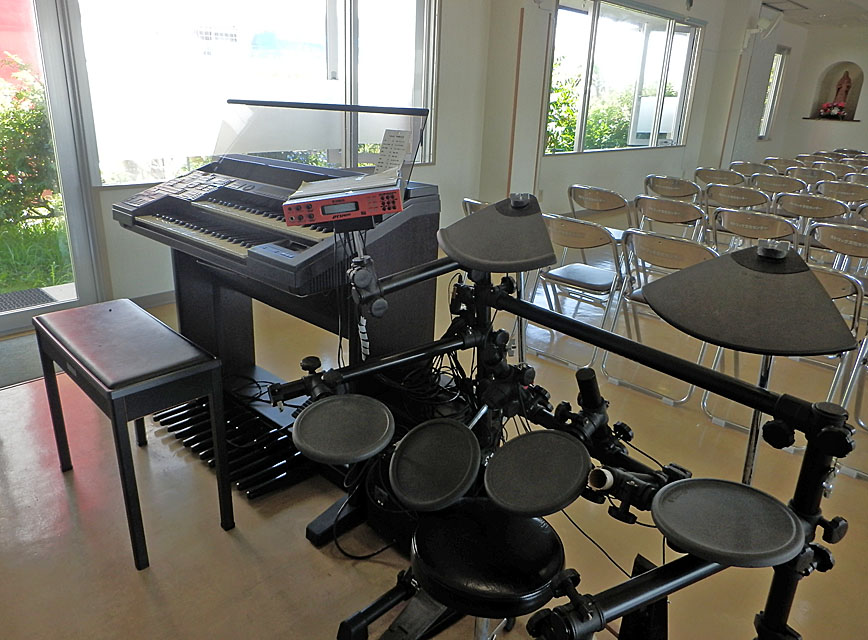 小禄教会には、沖縄戦で戦没された日米2人の司祭、森神父(宮崎県出身)とジェローム神父(カプチン会)の平和記念碑が建てられています。